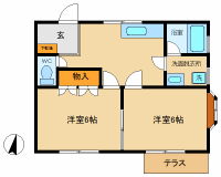 特色:バストイレ別、ガスキッチン、室内洗濯機置場、エアコン、角部屋、洋室、収納